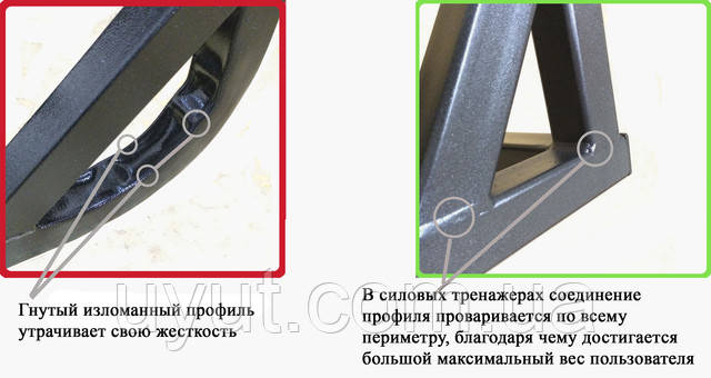 Каркас Турніка ТМ Затишок Спорт має не тільки спеціальну розпірку, а й друге ребро жорсткості, що дає тренажеру витримувати 350 кілограмів, на відміну від інших бюджетних моделей.