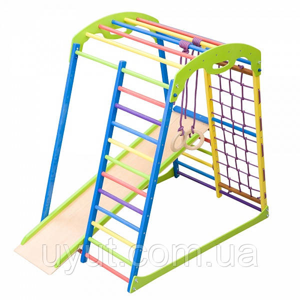 Дитячий спортивний комплекс для дому SportWood Plus — ще удосконалена модифікація спортивного комплексу SportWood. Його головна відмінність від попередньої прекрасної моделі — наявність оригінальних барвистих атрибутів для інтелектуального та художнього розвитку вашої дитини.