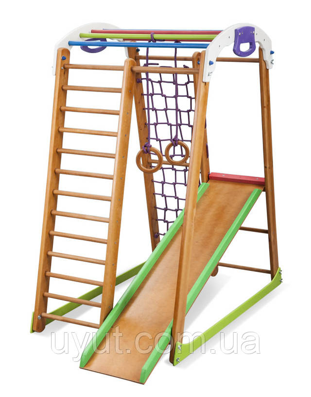 Дитячий спортивний куточок — «Кроха — 2» — багатофункціональна модель, розрахована на малюків раннього віку. Цей спорткомплекс можна назвати справжнім ігровим містом зі шведською стінкою, гіркою, прасувальною сіткою та гімнастичними кільцями, досить органічно доповненими ще одним дуже корисним і захопливим спортивним спорядженням — рукодією. Купуючи такий спортивно-ігровий комплекс для своєї дитини, Ви забезпечите їй гарний настрій у будь-який час і в будь-яку погоду, не виходячи з дому. Крім того, ця модель дає змогу дитині зміцнювати своє здоров'я, тренуючи та розвиваючи м'язи.